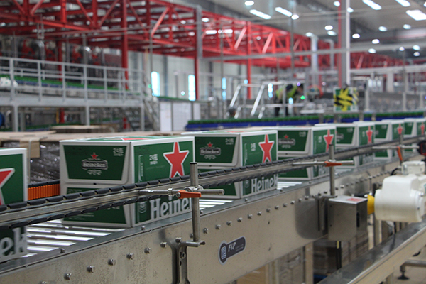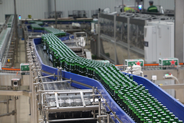 南京恒昌在玻璃瓶輸送系統設計和制造上擁有強大的技術實力和豐富的經驗,能夠設計制造速度達60000/小時輸送系統。南京恒昌在保證輸送速度的同時也能保證整線效率,在喜力啤酒嘉善工廠的玻璃瓶啤酒線產能達60000BPH。